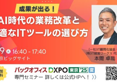 【DXPO】8/19(火)16:40~|成果が出る!AI時代の業務改革と最適なITツールの選び方